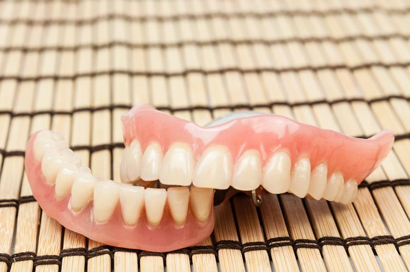 Complete dentures are removable whole mouth teeth replacement devices. When all of the teeth are missing, replacement teeth are mounted to a base that will suction directly to the gums. There are two kinds of complete dentures, immediate and conventional. Immediate dentures are designed to be worn by patients who have recently had all their teeth removed in preparation for dentures. These immediate dentures provide a temporary replacement for the teeth while the gums heal from the teeth removal surgery. Once the mouth has fully healed from the teeth removal (usually around a month to six weeks), the immediate dentures can be replaced by conventional dentures that will be used long term.